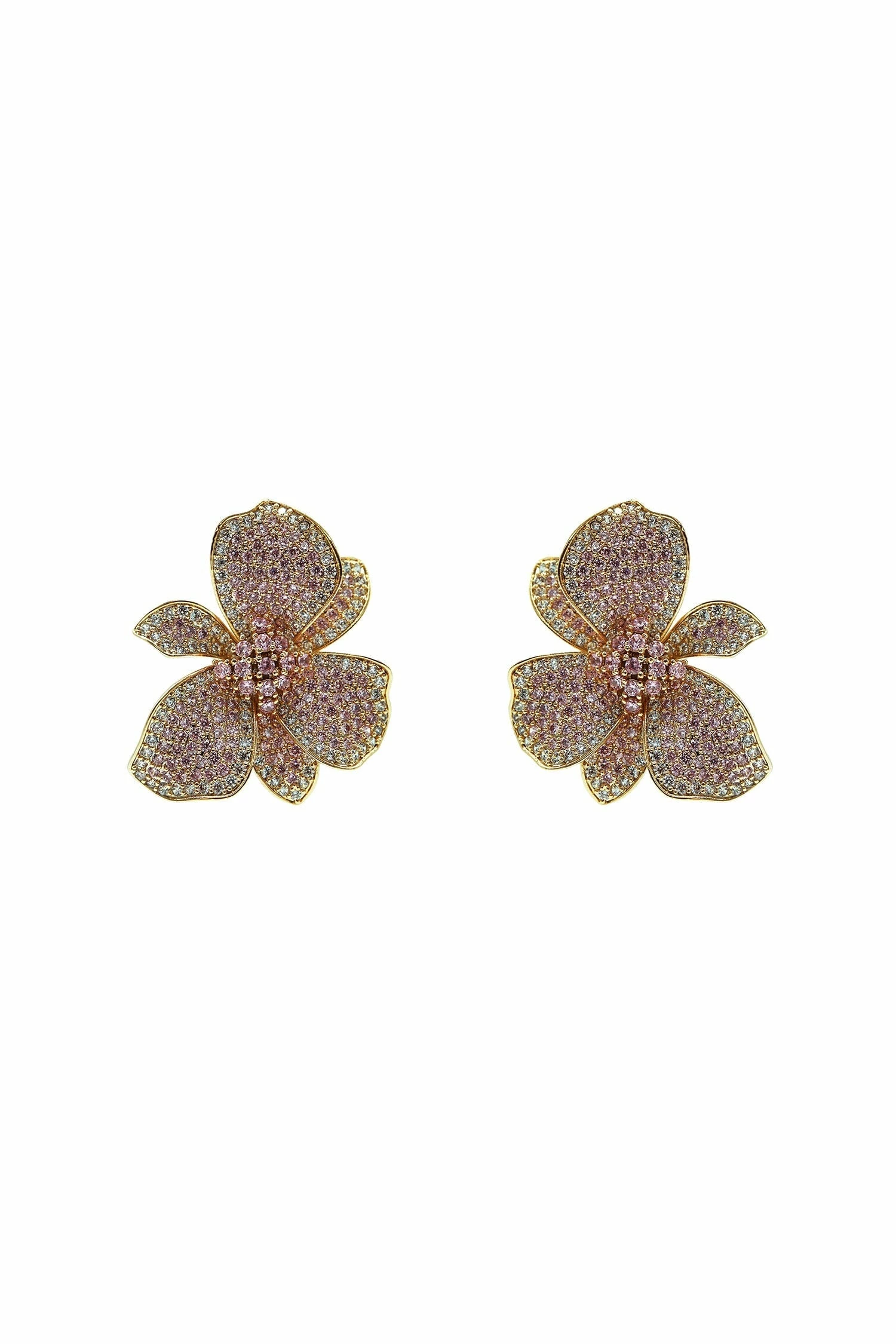 The Arianne Earrings are fun and playful whilst still adhering to its elegant aesthetic. This statement flower stud is embellished with soft pink & white diamantes for a luxurious appeal.