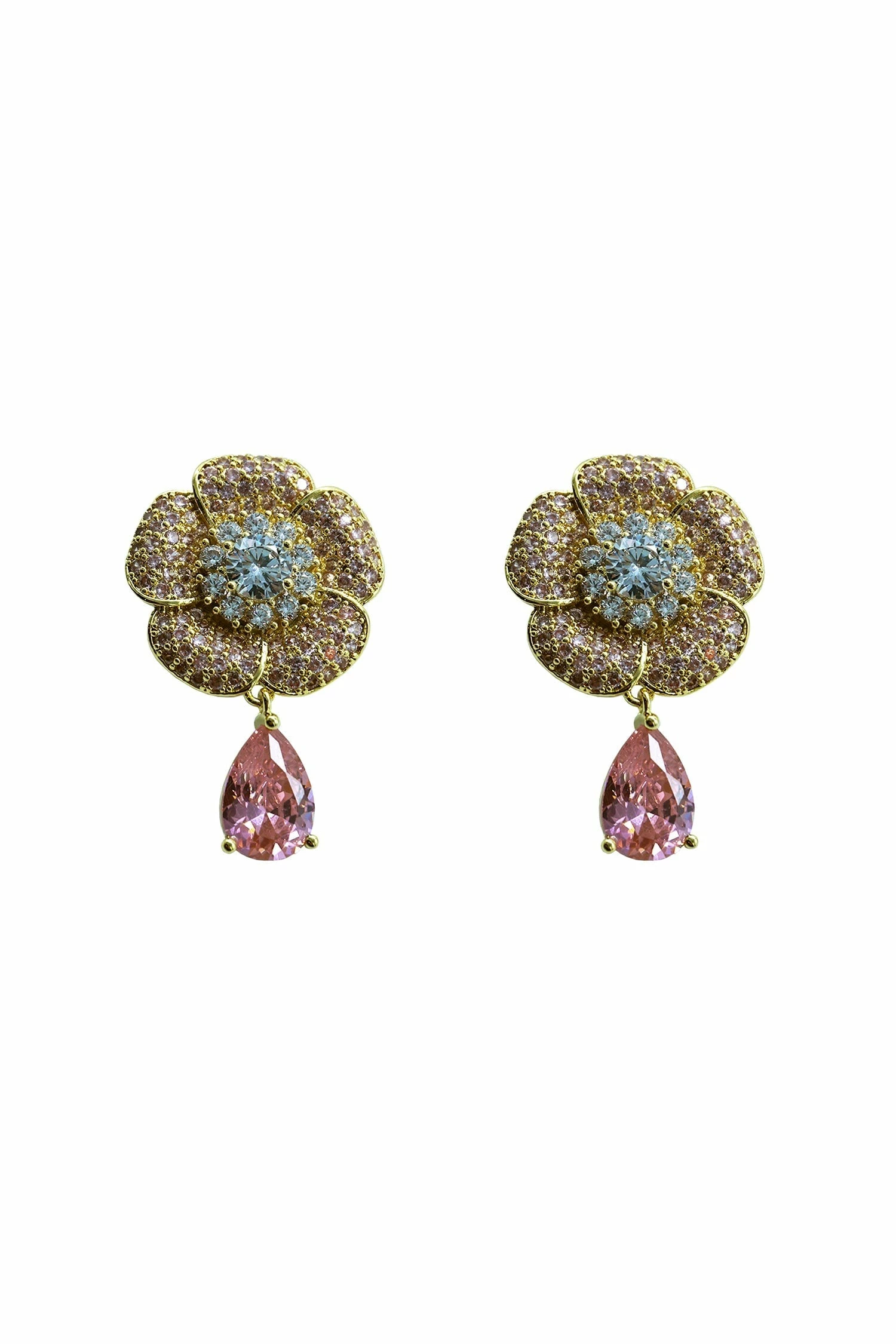 The Danielle Earrings bring forth an essence of luxury with its encrusted floral stud and additional blush pink gem. Pair with your favourite Alamour look for added elegance.
