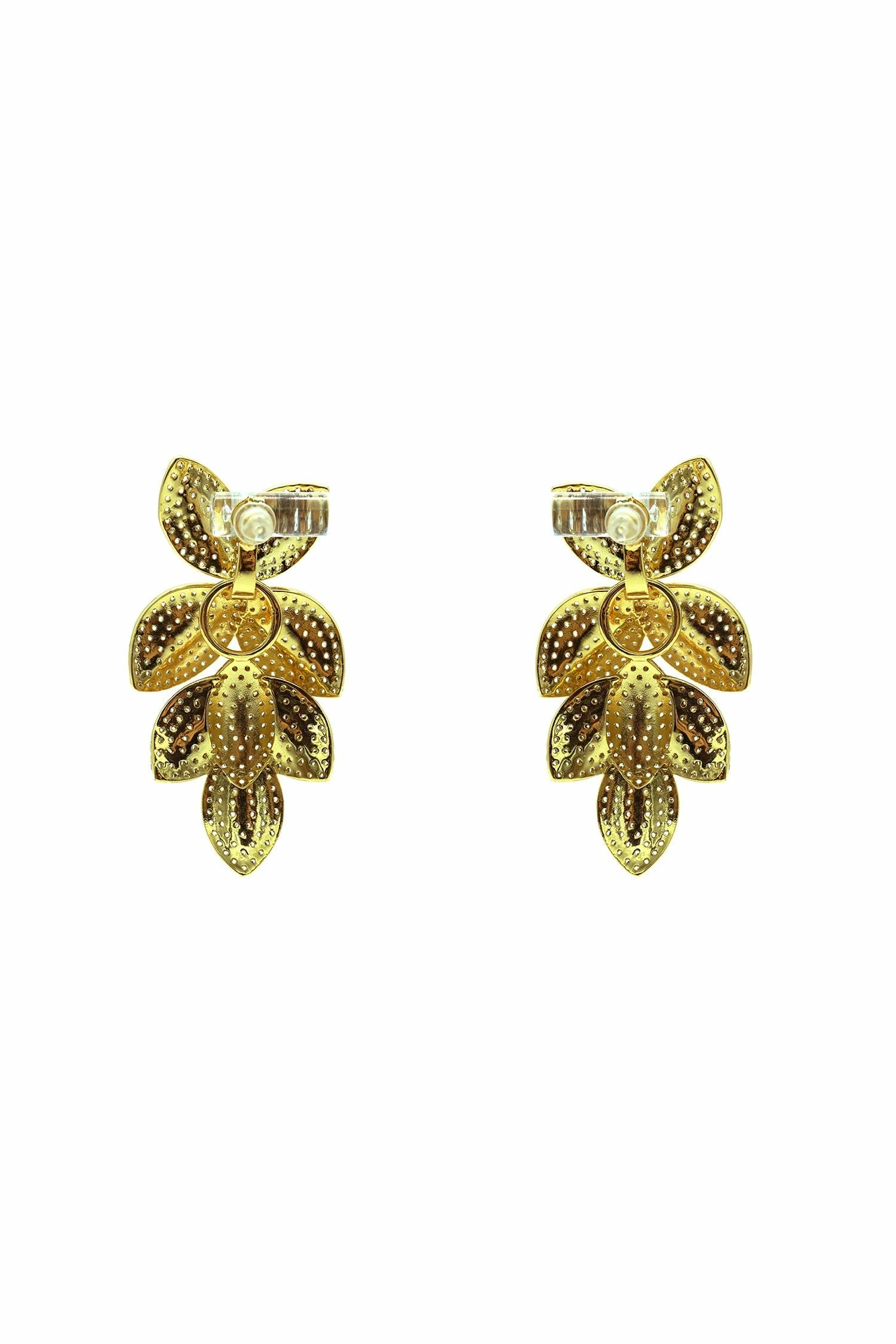 Elevate your look with the Galina Gold Embellished Earrings. Rendered from a gold hardware with silver diamantes.