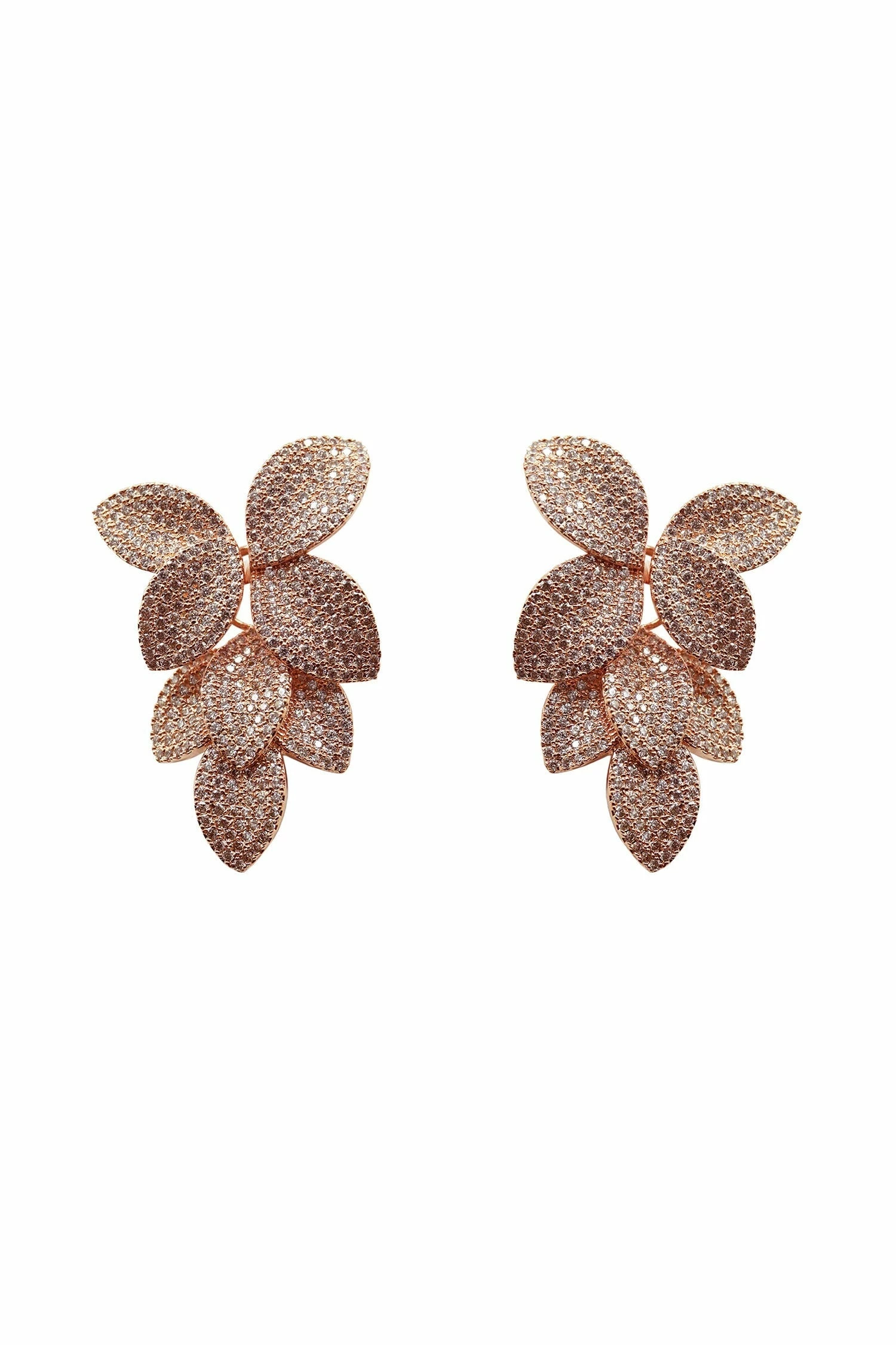 Elevate your look with the Galina Rose Gold Embellished Earrings. Rendered from a gold hardware with silver diamantes.