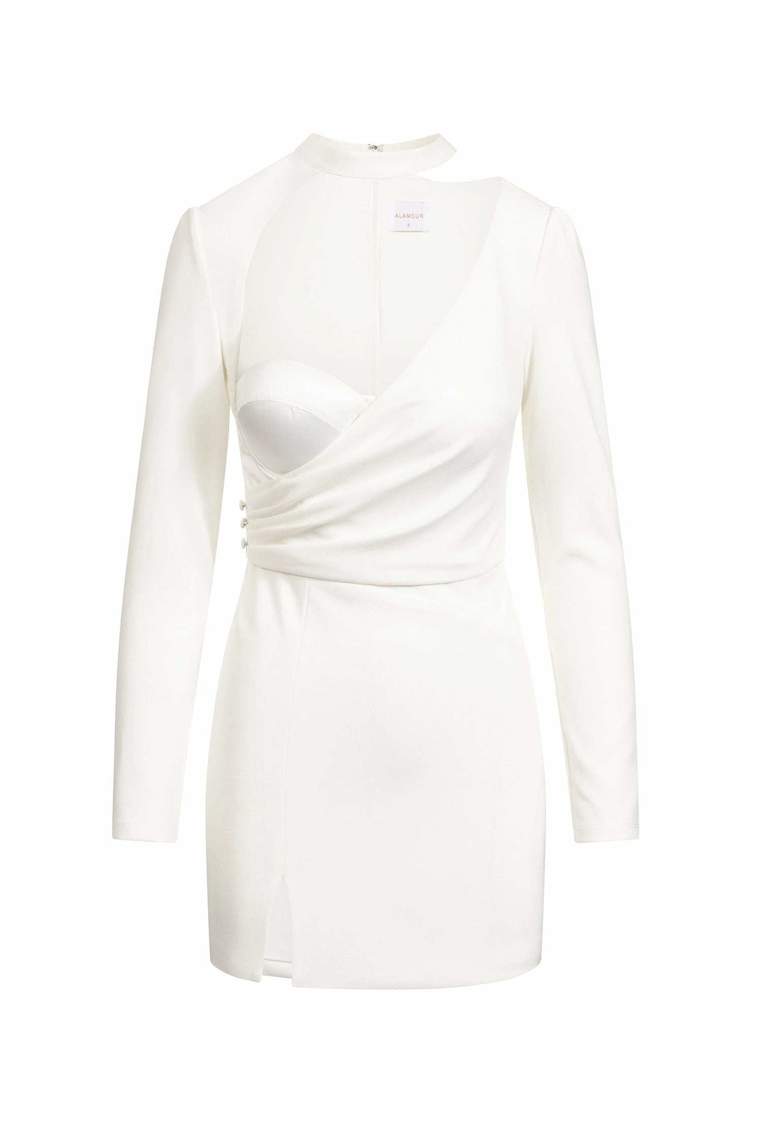 Glamorous and sophisticated, the Johanne Dress meets this demand. Produced from a soft crepe fabric with a touch of satin at the bustier, this long sleeve mini dress is perfect for the modern woman.