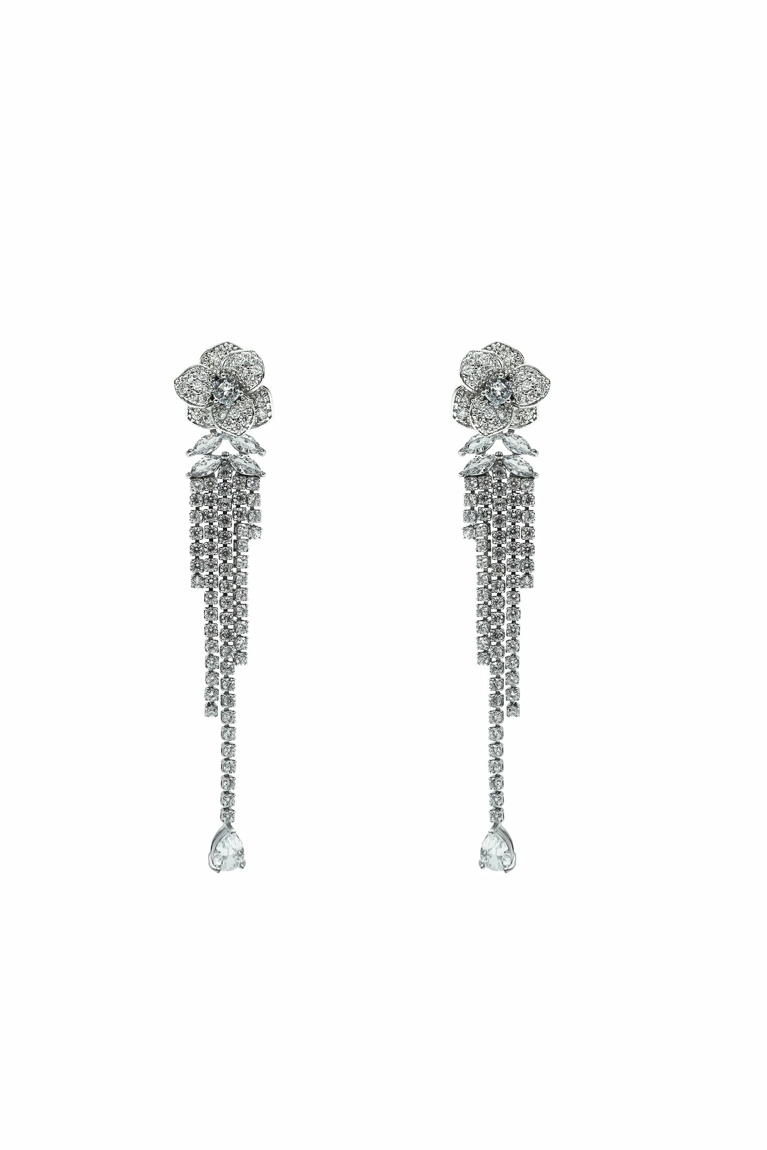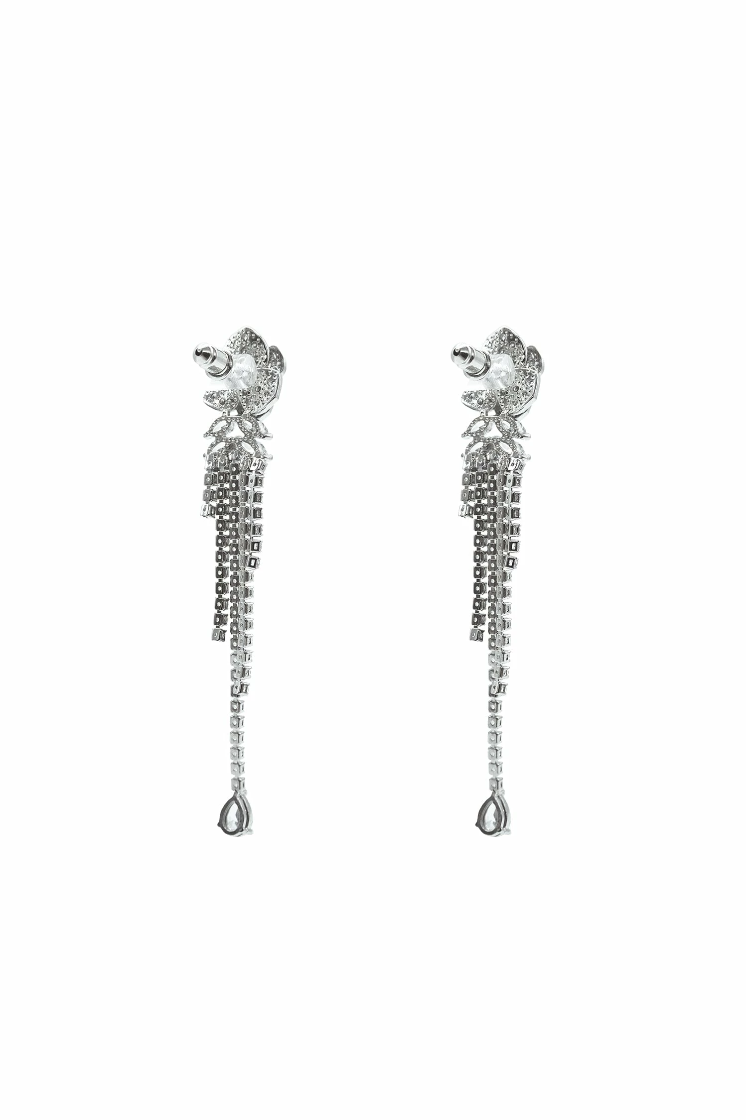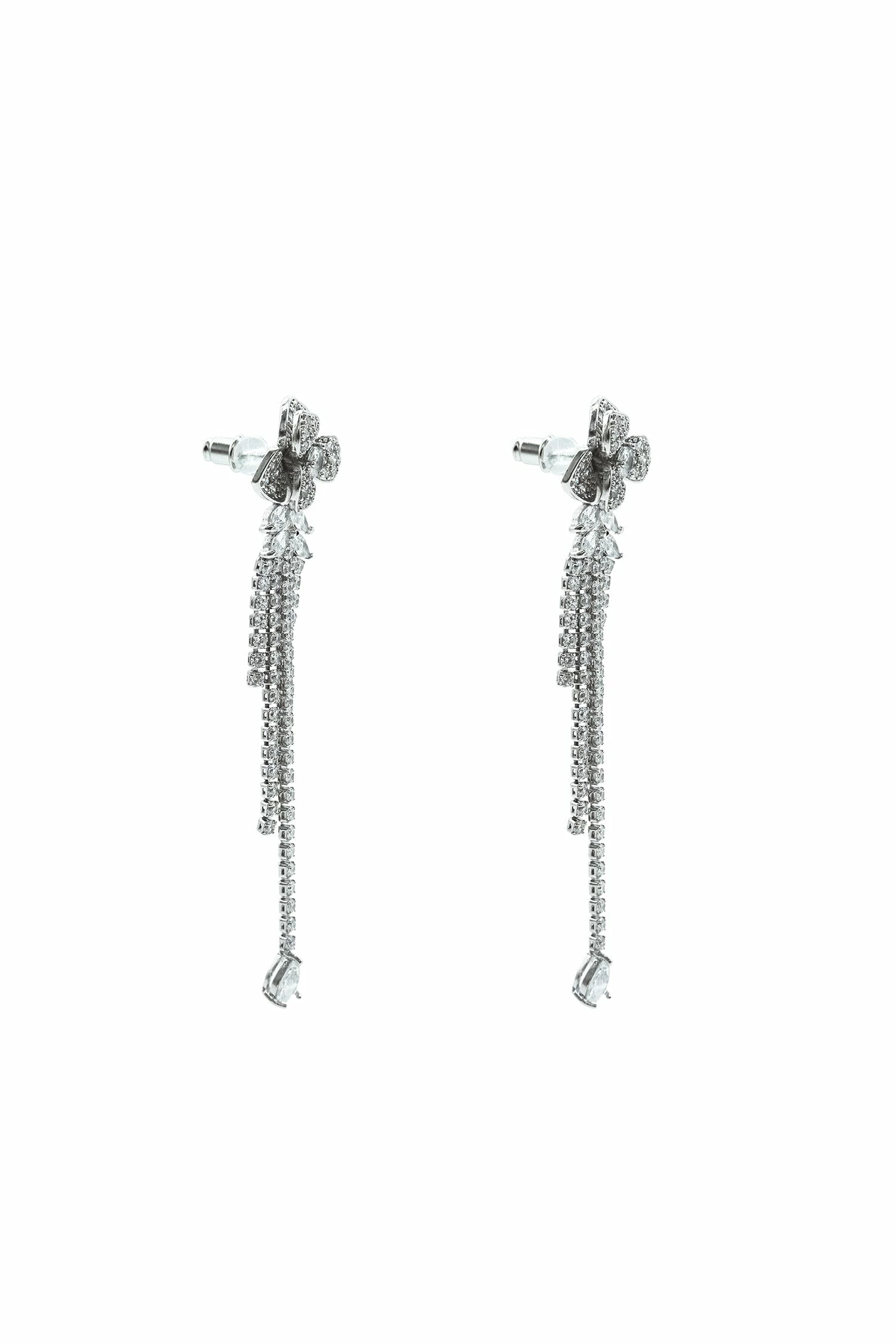 Elevate your look with the Katia Flower Drop Earrings. Crafted from silver hardware and embellished with diamantes and a flower stud.
