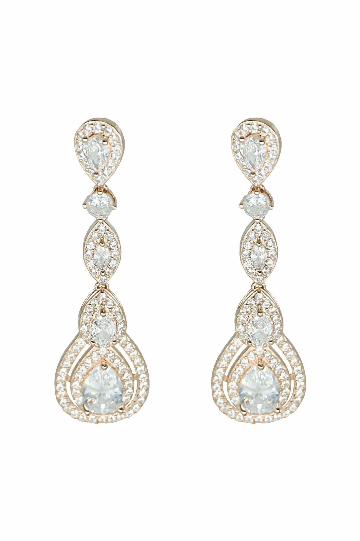 Elevate your look with the Manon Earrings. Embellished with silver diamantes and crystals on rose gold coloured hardware to create a radiant sparkle, this teardrop style has endless styling capabilities.