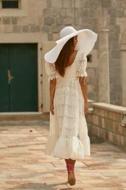 An enticing midi dress for your summer wardrobe. The Violette Dress embraces a bohemian yet classic resort look with its off-shoulder sleeves, detailed lace-tiered fabric, and dainty thin shoulder straps. With an a-line silhouette and midi length, the Violetta Dress will be the newest staple for your wardrobe.